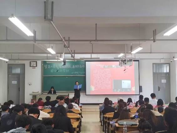 首先,在场人员共同奏唱共青团团歌。答辩顺序已经由提前抽签决定,大二团支部首先进行答辩,答辩过后现场人员通过扫描屏幕上的二维码对喜爱的团支部进行线上投票,投票过后组织部成员带来了舞蹈表演,缓和现场紧张的气氛,接下来大一团支部继续进行答辩。在整场过程中,各支部播放精彩的团日活动视频,展示创新的活动方式,拉票环节的新颖形式更是点燃了全场气氛。最后组织部成员以舞蹈和合唱节目为结尾,顺利结束了“学习二十大,永远跟党走,奋进新征程”团日活动答辩比赛。