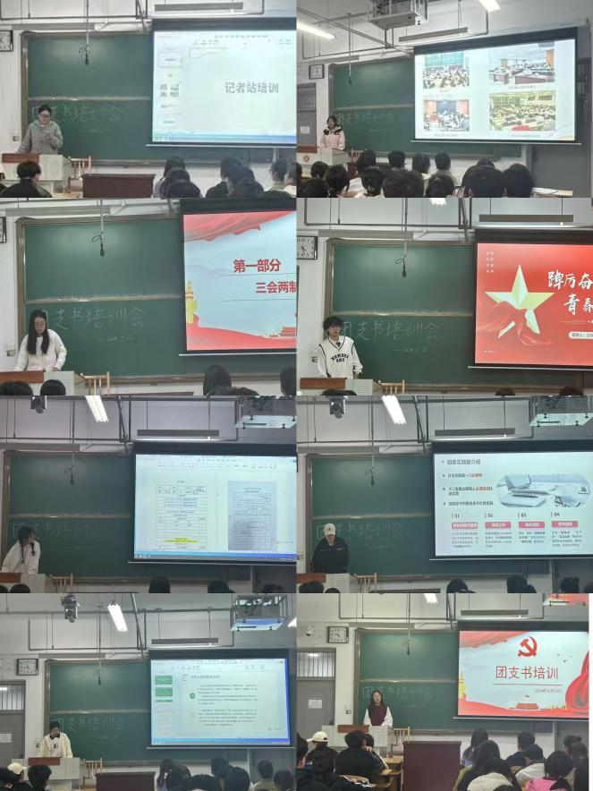 青年媒体中心主任杜升宣和记者站副部王雨鑫分别就媒体中心职责和新闻稿撰写进行了讲解。团委组织部部长常宇燕对“三会两制一课”制度进行了深入阐释,并明确了2024-2025年度组织部工作计划及团支书、组织委员的对接流程。