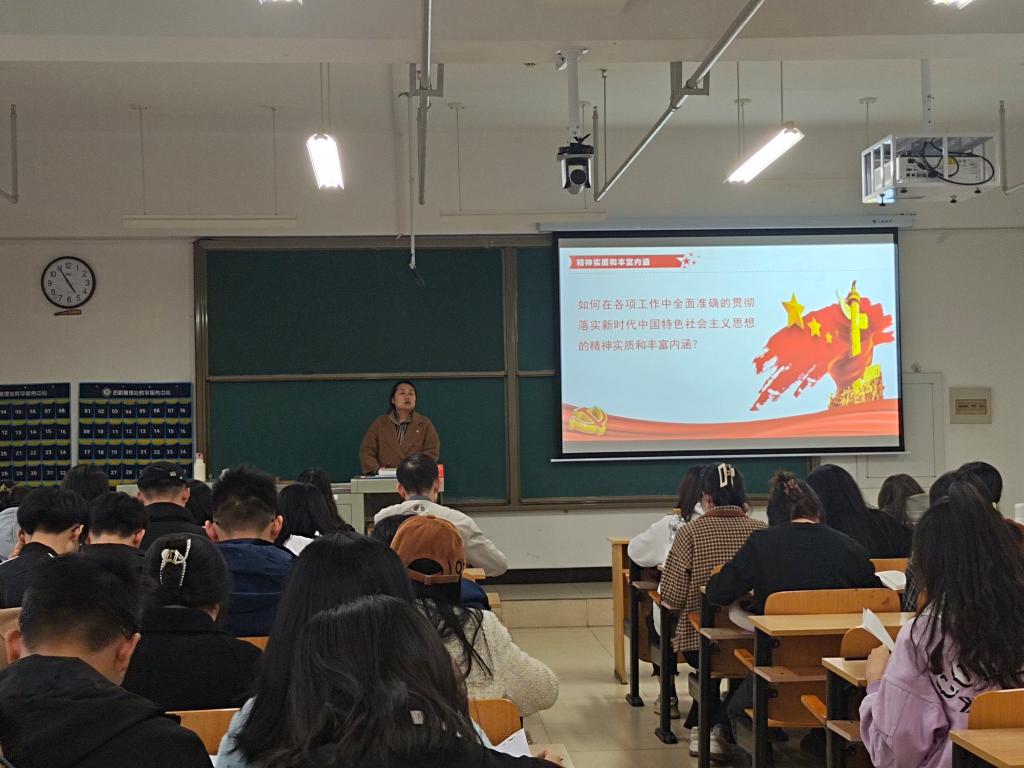 随后全体党员进行了集中学习。文楠老师以新时代中国特色社会主义思想实现了马克思主义中国化时代化新的飞跃为本次学习主题,就“新时代中国特色社会主义实现的精神实质和丰富内涵”、“坚持把马克思主义基本原理同中国具体实践相结合、同中华传统优秀文化相结合”、“把握好新时代中国特色社会主义思想的世界观和方法论,坚持好、运用好贯穿其中的立场观点方法”等三个部分进行讲解。
