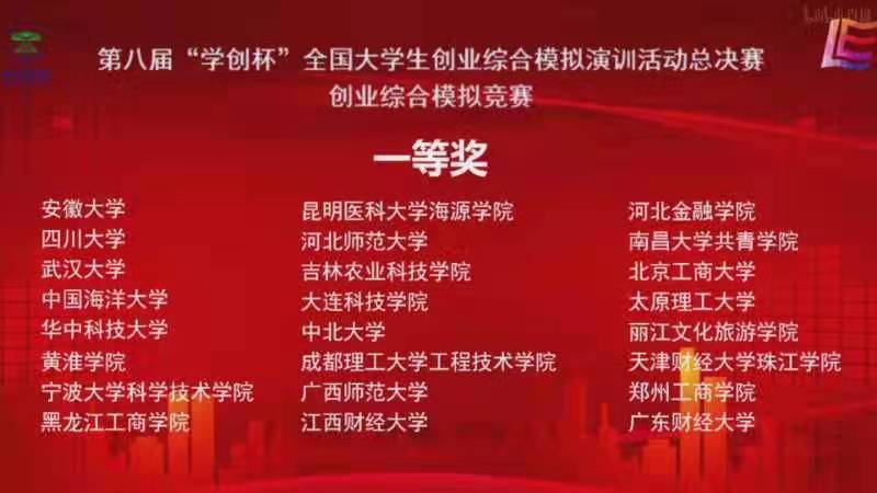 “学创杯”全国大学生创业综合模拟大赛由教育部高等学校国家级实验教学示范中心联席会主办,已持续举办八届。本项赛事已列入中国高等教育学会全国普通高校大学生竞赛排行榜,目前已成为一级赛事。 本届大赛吸引了包含北京大学、武汉大学、华中科技大学等1075所高校、超过3万支队伍、15万名师生参与。经过校赛和省赛层层角逐,最终有200余所院校晋级全国总决赛。总决赛因疫情防控需要,采用在线方式进行。大赛旨在激励大学生弘扬时代精神,培养创业意识,提高创业能力,促进高校就业创业教育的蓬勃开展,发现和培养具有创新思维和创业潜力的优秀人才。