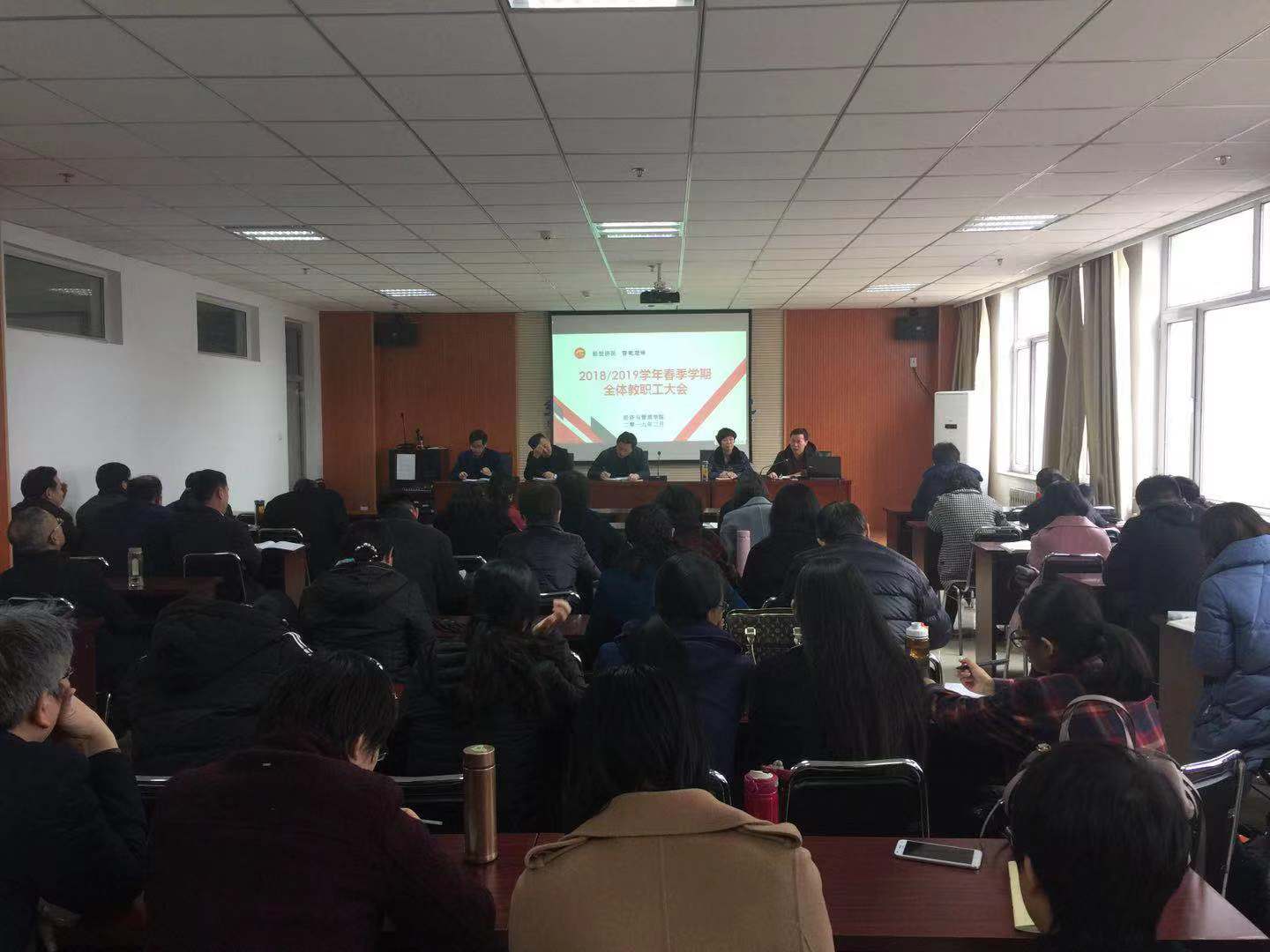 2月26日下午在逸夫楼南楼301室,黄金城hjc999召开了新学期工作部署会。会议由院党委书记王琳主持,学院党政领导、全体教职工参加了会议。