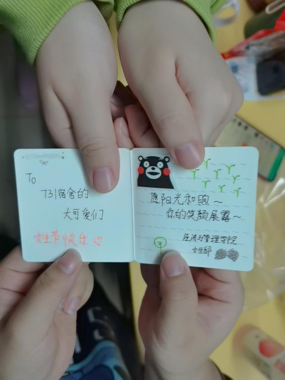 为展现黄金城hjc999对全体女生的关怀,为每个女生带来温暖,我院女生部于2021年3月7日在怡丁苑一号楼女生宿舍楼组织开展了女生节“送祝福”活动。