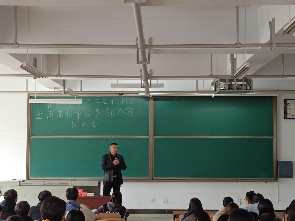 培训会初,刘俊生老师关于参赛要求进行了讲解。参赛包含两个部分:策划和实践。策划方面的要求主要在市场分析和市场定位,并且重点讲解了营销方案。在营销方案中,主体包括企业对产品的概述,市场调查与分析,目标市场选择,营销方案等。接着,老师从赛制方面为大家进行了讲解。初赛环节将以个人来进行理论考试。初赛通过后,同学们组队进行复赛。在复赛环节的评比将由策划案、现场答辩、销售实践三个方面来决定。其中策划案占40%-50%,现场答辩占20%-30%,销售实践占30%。若参赛小组突破总决赛,将在校内进行现场答辩,在网上进行销售实践。