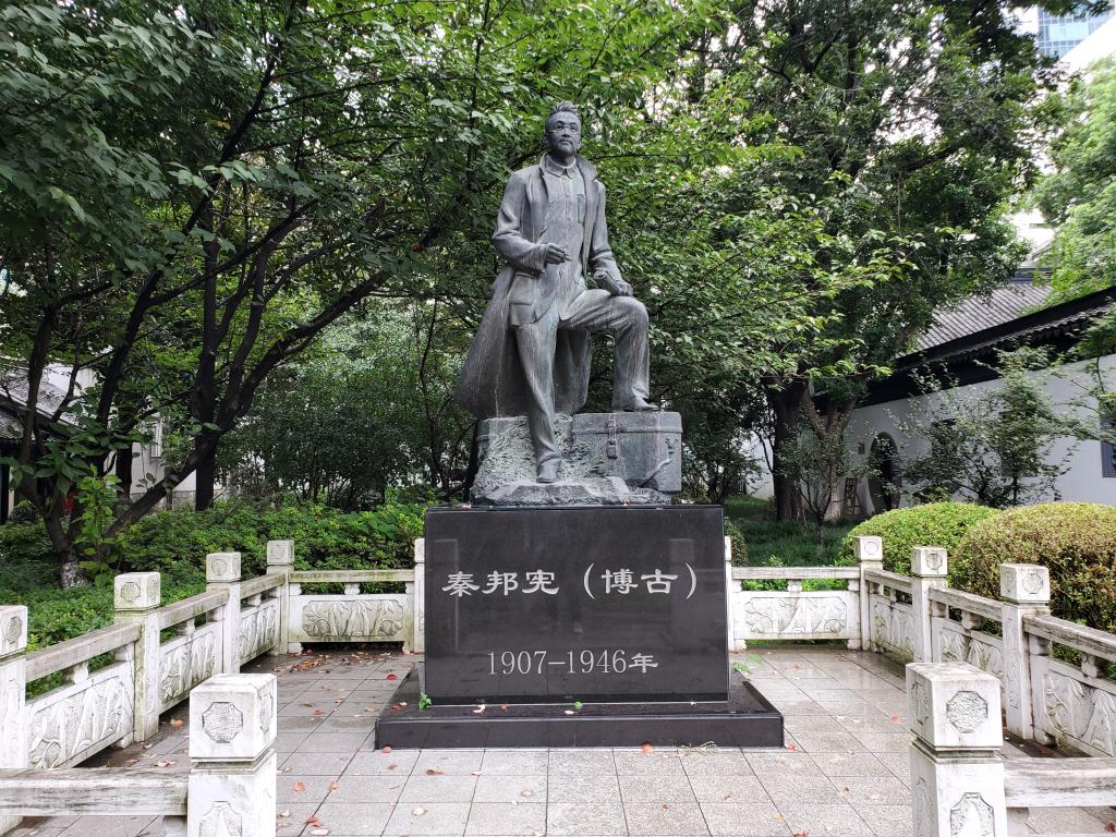 第一日进行实践分享的是实践团队长宋国庆,他来到了江苏省无锡市秦邦宪故居,瞻仰先烈秦邦宪,从党的非凡历程中汲取奋进新征程、建功新时代的智慧和力量。宋国庆在腾讯会议上为大家分享今日纪实时说到:“我怀着一份崇敬的心情走进故居大门,周恩来总理的亲笔题词历历在目:‘博古!你是为修改宪草而粉身碎骨的。我记住,我永远记住。我敢向你保证:我们要为完成一部民主宪法,建立民主中国而奋斗到底!。博古为人民而死,死得其所。博古的崇高品德和光辉形象永远留在中国人民的心中。’”