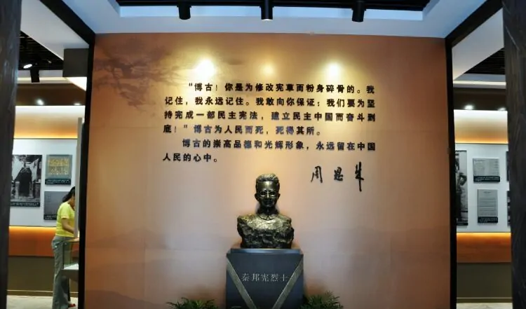 在秦邦宪故居,复原的场景形态、影像资料,真实、生动地再现了秦邦宪先生短暂而辉煌的一生。在墙面上挂着的黑白照片与文字介绍,生动展示了秦邦宪先生生平为新中国的诞生所做的功绩。宋国庆分享了《勤奋读书立志报国》、《探求真理投身革命》、《临危授命历尽艰难》、《统战工作呕心沥血》、《新闻事业辉煌新篇》、《鞠躬尽瘁名垂千古》六个部分的展览图片,实践团成员们心怀敬意,凝神聚力,认真倾听,仔细观看着每一幅图片,进一步了解了他的革命业绩和高贵品质。