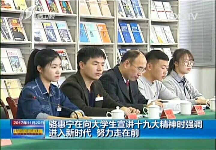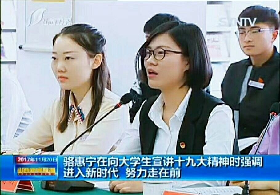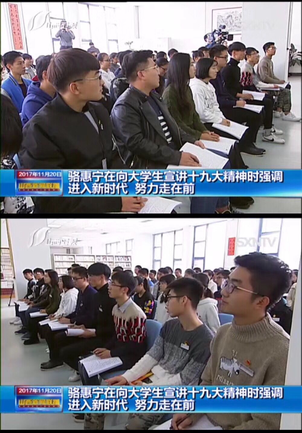 骆惠宁书记以“中国特色社会主义进入新时代”为主题,向大学生深入宣讲十九大精神。他结合十八大以来党和国家大局9个方面的“明显改变”,对山西实现重大历史性转折现状进行深入讲解。骆书记指出,“新时代需要青年人来开辟建设”,作为青年学生,一定要认真学习领会十九大精神内涵,积极发挥思想创新意识,为中国梦注入新鲜活力。