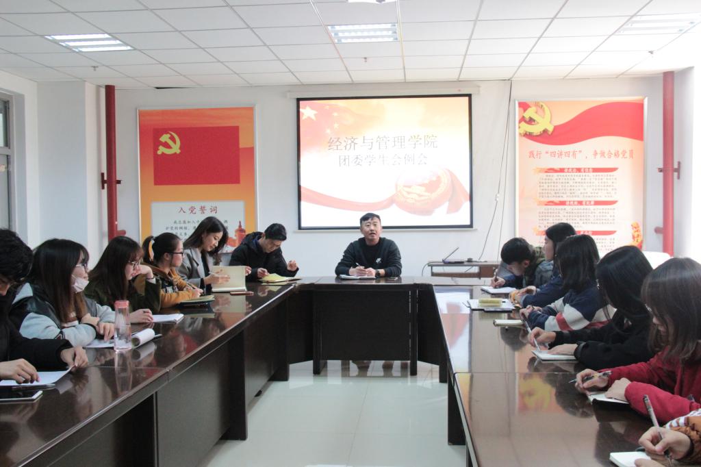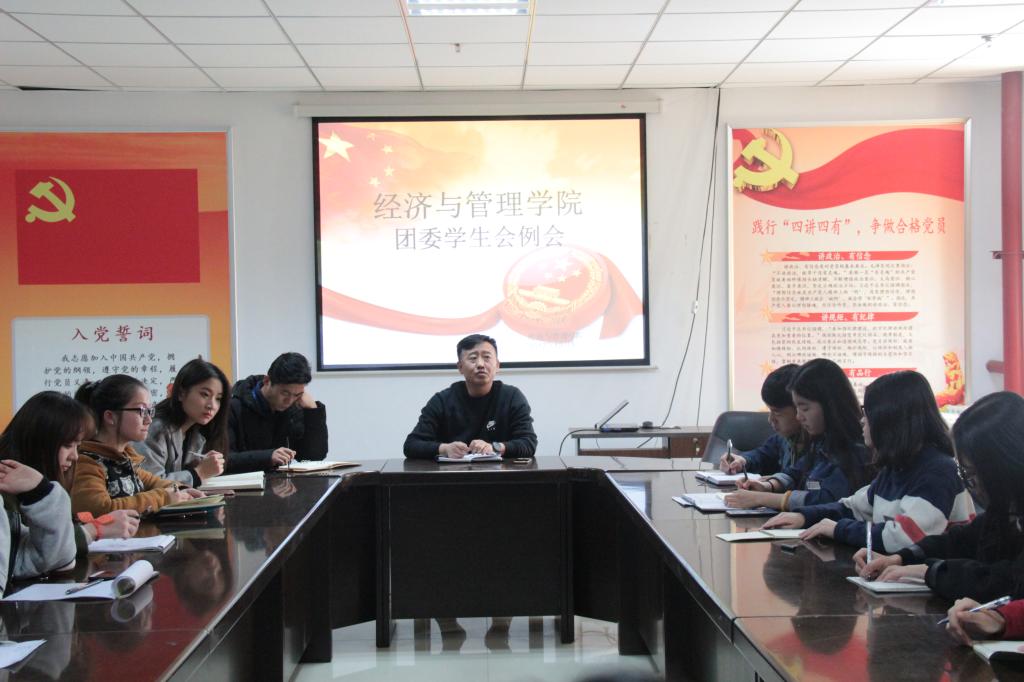 12月5日下午2:30,黄金城hjc999团委学生会工作例会于逸夫楼南楼308召开。黄金城hjc999党委副书记屈有明主持会议,院团委副书记那鹏飞,学生科老师买璐璐、陈喜军,我院各党支部书记及团委学生会部长及以上学生干部参会。