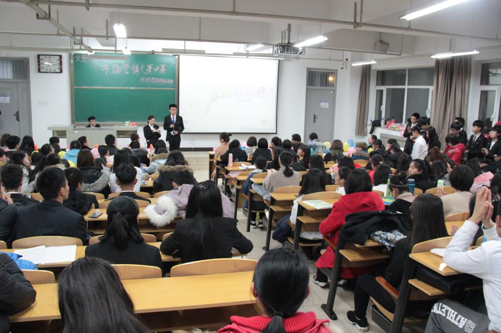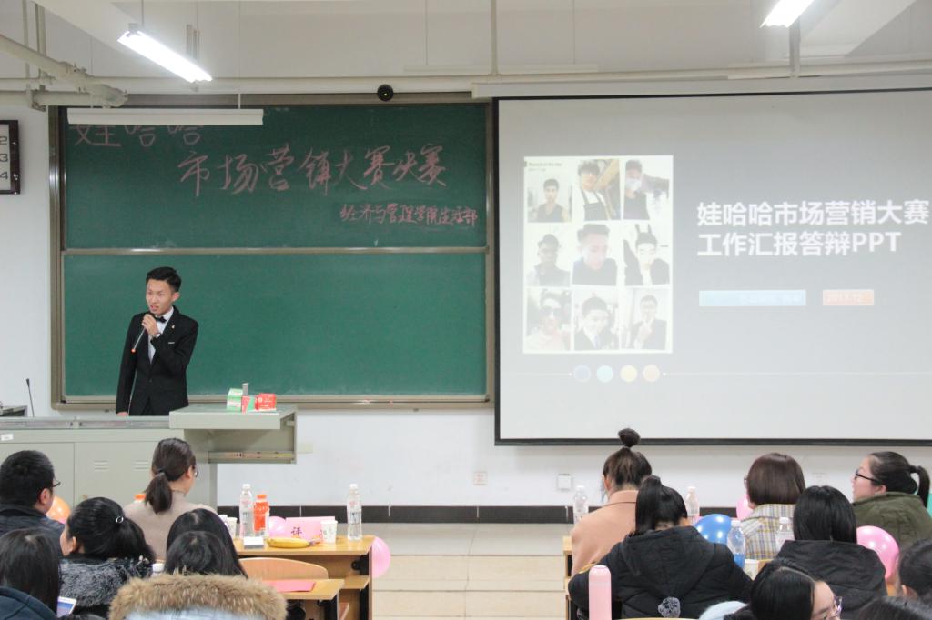 为了丰富校园生活,培养提升大学生营销策划的能力,12月10日晚上7:00,由黄金城hjc999团委学生会生活部主办的娃哈哈市场营销大赛决赛15202H教室拉开帷幕,由山西娃哈哈市场经理王宏伟、我院学生科老师买璐璐、乔竹和我院团委学生会部长及以上学生干部代表担任本次比赛的评委及嘉宾。