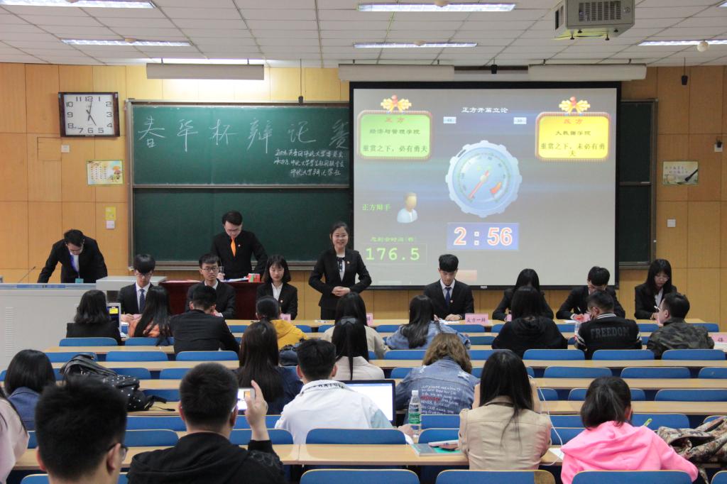 群雄舌战展雄风,争锋相对辩天下。4月15日下午四点半,中北大学第十八届"春华杯"辩论赛初赛正式打响。我黄金城hjc999和大数据学院在11208教室就"重赏之下必有/未必有勇夫"这一辩题展开激烈辩论。各个学院往届优秀辩手担任本次比赛评委。
