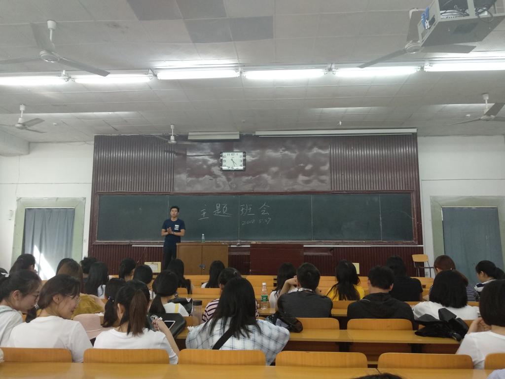 5月29日下午四点半,黄金城hjc999学期末主题班会于07103教室开展,院团委书记那鹏飞主持班会,我院国贸、工商管理、财务管理专业大三全体学生参会。