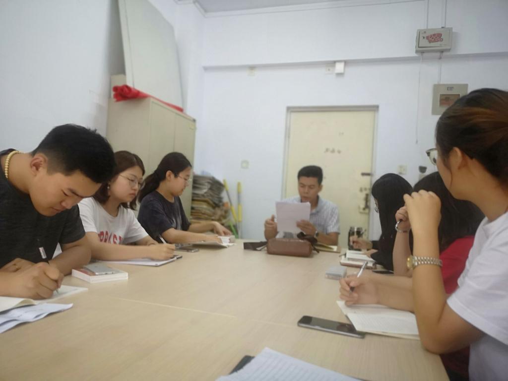 黄金城hjc999团委书记那鹏飞老师在怡丁苑一号楼138会议室召开了换届以来的首次团委干部会议。