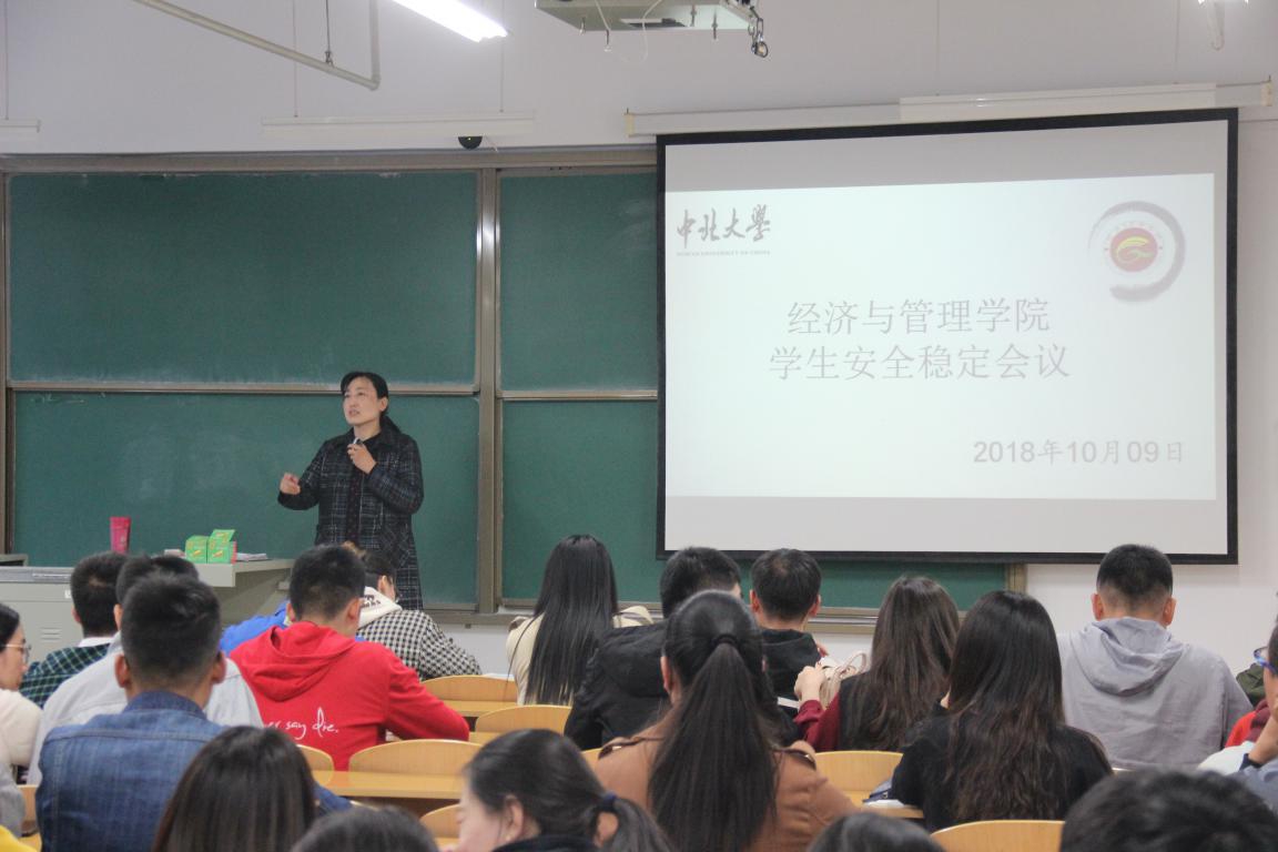 黄金城hjc999于10月9日17点在15204教室进行了黄金城hjc999安全稳定与学风教育大会,全体班长与团支书参加了此次会议,学生科科长李爱霞出席并主持此次会议。