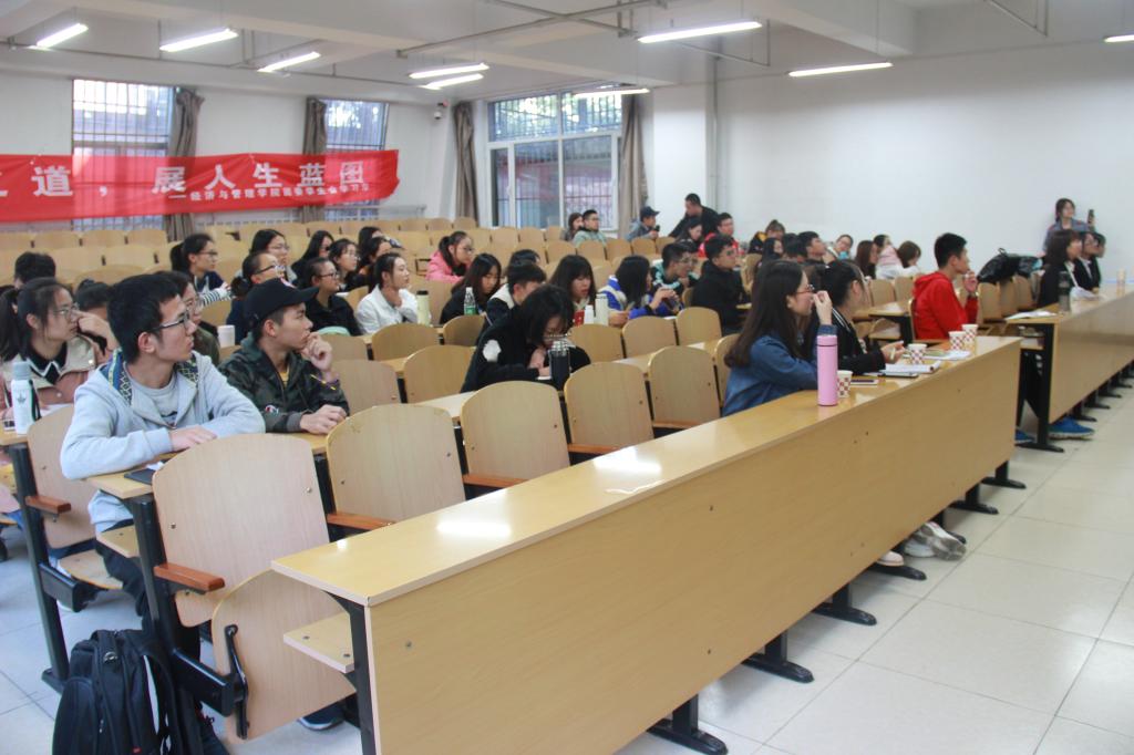 杨琴琴具体介绍了考研以及保研的相关知识。她强调,保研有三点要求:体测、创新能力和实践能力。通过发表学术论文、参加创新创业类项目或申报专利等途径提高创新能力,通过参与志愿者活动或做出突出贡献提高实践能力,保研之路就是成长之路。她也讲解了考研重点,从考研科目、考研前景等方面指导在座同学。在最后的提问环节,在座学生针对自己学习的困惑和问题求取经验,四位优秀学生耐心解答,彼此间有了更深刻的思想交流。