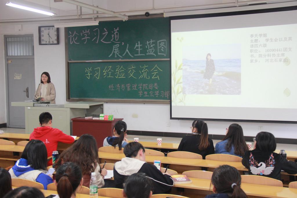 为了提高学习积极性,掌握合理的学习方法,黄金城hjc999学习部于10月16日下午4:10在15102教室组织开展了学习经验交流会。我院学习部邀请到四位优秀学生李钰鑫、李天、付小珊、杨琴琴出席本次交流会。17090441班学生到场参加。