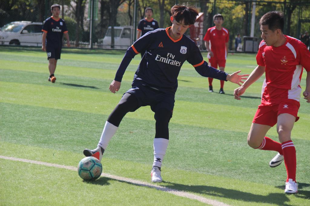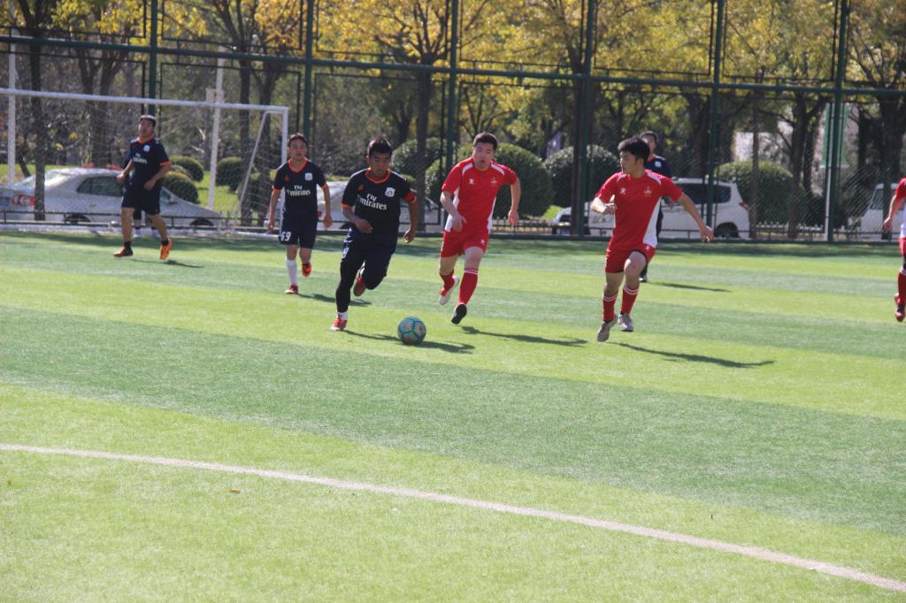 随着裁判一声哨响,比赛正式开始。研究生学院不愧为上届新生杯冠军,一开场就率先进入状态,不断对我方球门发起攻势。很快,研究生学院凭借一次禁区内乱战打门得分。比分落后之后,我方球员提起精神,攻势逐渐增强,不断打出漂亮配合,一次次向对方球门发起冲击,无奈对方防守稳健,我方没能追平比分,上半场以我方落后结束。中场休息阶段。双方积极讨论战术战略,我方教练为球员们献计献策加油鼓气。在下半场比赛中,我方球员重新调整了战略队形,并保持高频率进攻,凭借着积极地拼抢,创造了几脚很有威胁的射门,只可惜都被对方球员拦下。双方队员你来我往,场上的形势陷入胶着状态。但随着比赛的持续进行,时间所剩不多,我方球员全面前压,为了扳平比分而努力,然而对方始终保持全院防守,我方在比赛结束之前没能得分。最终,研究生院对黄金城hjc999以1:0的比分成功进入决赛。