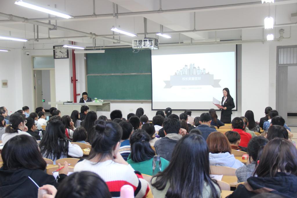 为帮助学校选拔校长奖章获得者,同时营造争当先进的良好风气,黄金城hjc999于10月29日下午4:00在15206教室举行第八届校长奖章评选答辩会。学生科科长李爱霞以及学生科侯向英老师、陈喜军老师出席答辩会议,保卫处郭薇薇老师也共同参与了此次会议,17级、18级部分班级到现场观看。