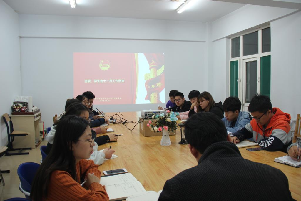 11月12日晚6:30,黄金城hjc999于怡丁苑一号学生公寓八楼会议室召开了团委学生会工作例会。院团委书记那鹏飞担任例会主讲人,院团委学生会学生干部参与例会。