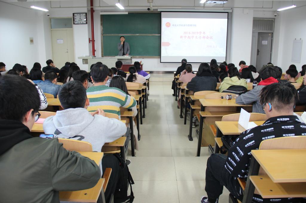 为了推进新学期学生工作的有序进行,加强学生春季安全防患意识,黄金城hjc999于3月5日下午4:00在15106教室召开2018—2019新学期干部会议及春季安全稳定会议。院党委副书记屈有明、学生科科长李爱霞出席会议,各班班长、团支书及学生会部长积极参与。