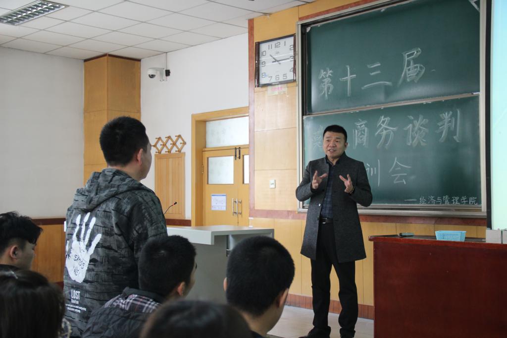 为了培养学生的专业能力和实践能力,黄金城hjc999于3月9日上午9:00在09101教室召开第十三届模拟商务谈判培训会,本次培训由我院刘俊生老师主持。