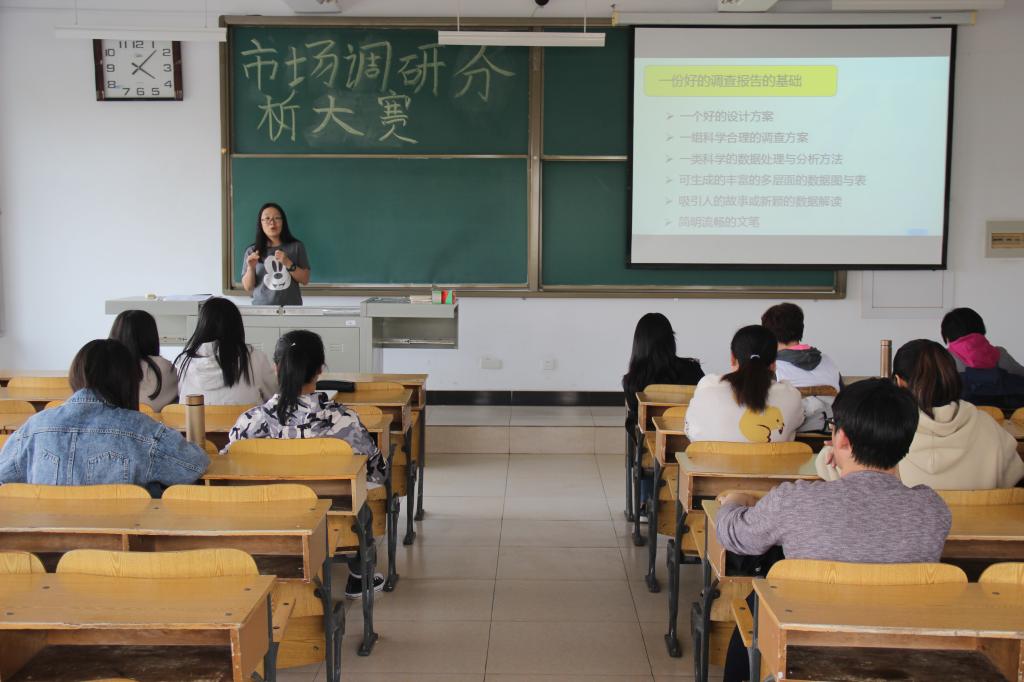 通过本次交流,不仅使同学们对市场调研分析大赛有进一步的了解,而且给他们提供了撰写报告、制作PPT的一些方法与建议,为同学们之后的答辩做了良好的准备工作,希望各学生能珍惜比赛机会,在实战中提升自我能力。